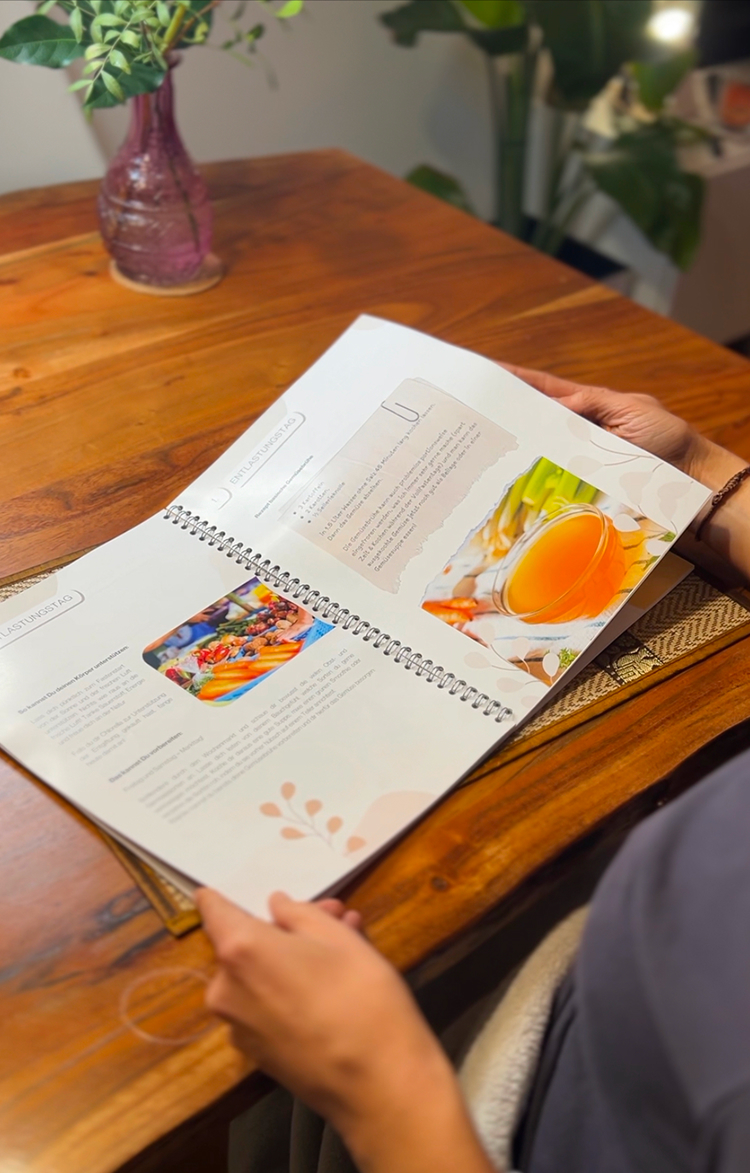 Das 10 Tage Workbook ist dein klarer Fahrplan für eine erfolgreiche Heilfastenkur. Es führt dich Schritt für Schritt durch alle Phasen, gibt dir Sicherheit und begleitet dich mit Tipps, Rezepten und Inspiration.